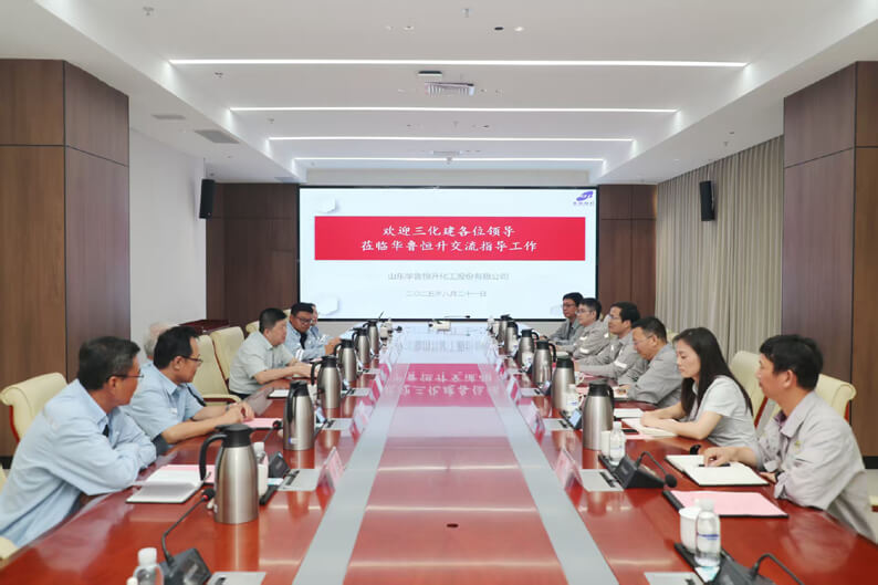 占德庆董事长分别会见了华鲁恒升化工股份有限公司董事长常怀春、裕龙石化有限公司董事长程仁策,感谢华鲁恒升、裕龙石化长期以来的信任与支持,介绍了公司坚持以“135”发展战略为统领,深入落实高质量发展“三张计划表”和系列专项行动部署,在改革发展党建及生产经营等方面取得的成效。他表示,华鲁恒升、裕龙石化是公司的优质合作伙伴,公司十分珍视合作中建立的深厚友谊、打下的良好基础,希望持续深化务实合作,交流发展经验,共同提升综合实力,打造化工项目安全高效建设的典范。常怀春董事长、程仁策董事长对公司的管理水平和服务质量予以高度认可,赞扬三化建是素质过硬、善打硬仗、能打胜仗的优秀合作伙伴,希望不断提升合作力度、拓宽合作领域,高质量推进项目建设,共同谱写友好合作新篇章。
