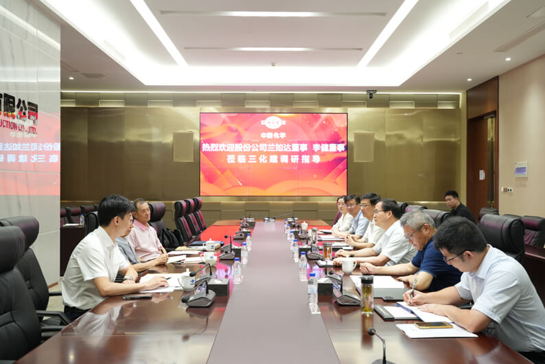在公司总部调研期间,兰如达、李健董事参观了办公楼园区和业绩展厅,指出三化建历史底蕴深厚,发展前景广阔,发展规模、经营管理、施工技术、机械装备、荣誉业绩、人才梯队建设等方面均展现出显著优势,希望三化建牢牢把握当前改革发展机遇期,聚焦高质量发展“三条曲线”战略布局,重点突破新能源、新材料、新基建等新兴领域,加快培育新的业务增长点,切实发挥中央企业“国家队”和“顶梁柱”作用;持续优化业务结构和组织架构,明确各层级管理职责,统筹推进国内国际两个市场协同发展;完善人才引育机制,创新激励机制,着力打造高素质专业化人才队伍,为企业高质量发展提供坚实人才支撑。