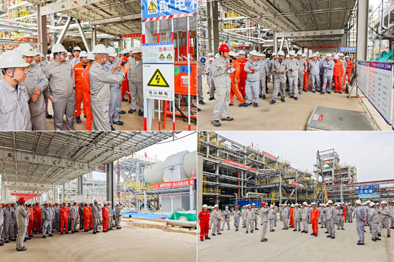 为高标准开展本次观摩,北京分公司北方华锦项目团队高度重视、周密策划,多部门协同联动,精细准备现场布置、路线规划、安全防护、环境整治等各环节。现场设置多幅工程展板与流程示意图,配备齐全各种安全防护用品,清理沿线施工垃圾及物料堆放,以整齐规范、文明有序的现场环境,展现出项目团队良好的精神风貌和管理水平。观摩团实地考察了库房、NP中间管廊、聚合单元与己烷回收等重点区域,对项目取得的建设成果、标准化管理实践给予高度评价和充分肯定。
