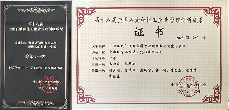 近日,2025年全国石油和化工企业管理创新大会在北京召开,米兰平台承担的《“矩阵式”项目集群管理新模式的构建与实践》课题荣获第十八届全国石油和化工企业管理创新成果一等奖。 课题立足于当前石化项目大型化、集群化发展的新需求,系统阐述了矩阵式管理模式在多重项目协同、资源高效配置与管控能力提升等方面的理论应用与实践路径,对推动企业治理现代化及行业高质量发展具有较强的参考价值。