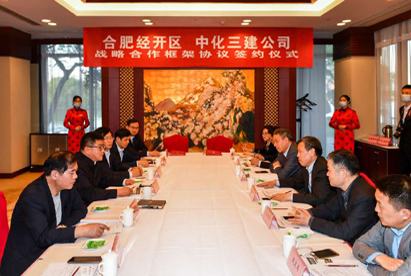 4月28日下午,集团(股份)公司总经理、党委副书记刘家强会见安徽省合肥经济技术开发区管委会主任、党工委书记秦远望,并出席公司与合肥经济技术开发区战略合作框架协议签约仪式。双方就推进中国化学工程与合肥市经开区基础设施等相关领域合作事宜进行了深入沟通交流。