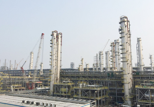 公司承担了一期项目6.3万吨钢结构、250万DB工艺管道焊接、2150台设备安装任务,工程合同价款及补偿款总计7.9亿元。自2017年10月一期项目地管工程开工、2018年7月安装工程开工以来,公司领导亲切关怀,各参战单位竭力奋战,全体参战员工辛勤付出,一个个关键节点被成功攻克,项目建设得到强力推进。