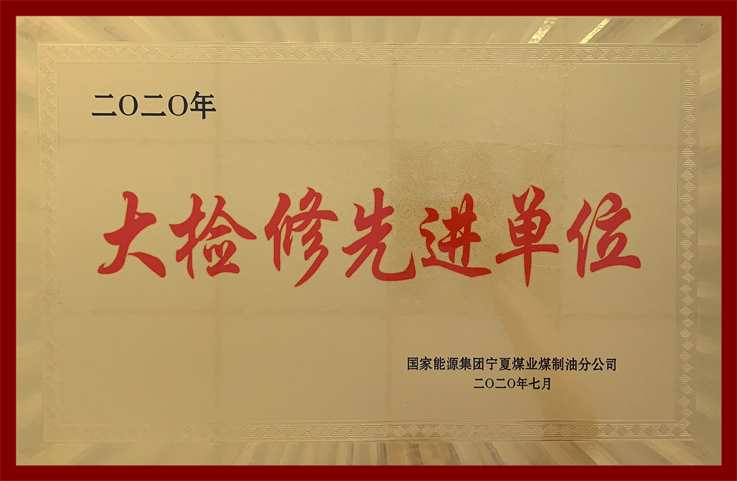 在6月30日召开的神华宁煤装置大检修总结表彭会上,宁夏分公司荣获“2020年大检修先进单位”称号。