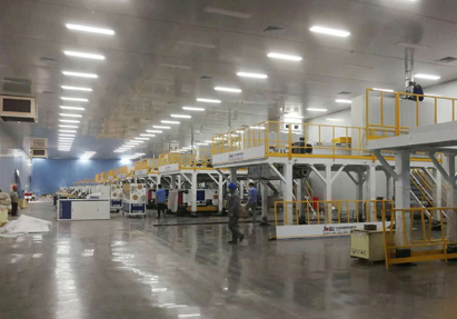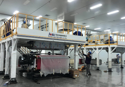 6月18日,第一台熔喷机到场后,项目部全体参战员工攻坚克难、加班延点、优化工序,确保各项工作计划的有序高效推进。目前,已完成10台熔喷机组安装,受电调试合格8台,计划8月1日全部完工。