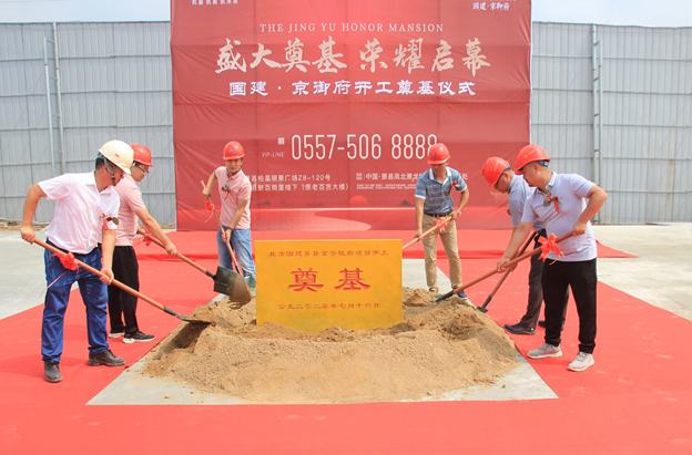 7月16日上午,安庆山口PPP项目经理部承建的北方国建萧县京御府小区项目举行开工奠基仪式。业主北京北方国建置业有限公司、监理公司代表,安庆山口PPP项目部经理杨步前及参战员工参加开工奠基仪式。