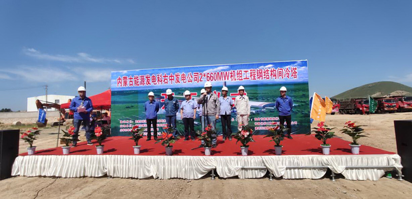 公司承建的内蒙古能源发电科右中发电公司2×660MW钢结构间冷塔项目日前举行开工仪式。业主内蒙古能源发电科右中发电有限公司、监理康远工程建设监理有限责任公司、总包东北电力设计院有限公司代表,路桥工程公司经理王祥勇及参战员工参加开工奠基仪式。