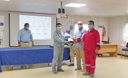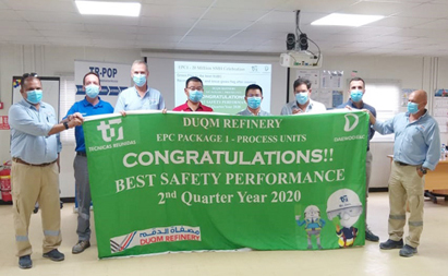 阿曼杜库姆炼油项目总包西班牙TR公司和韩国大宇公司日前举行EPC-1实现2000万安全工时庆祝会。公司阿曼杜库姆炼油项目经理部荣获2020年二季度“最佳安全表现”称号。会上,总包西班牙TR公司现场经理对项目部安全管理取得的成效予以充分肯定,希望中化三建再创佳绩,安全高效完成后续工作。