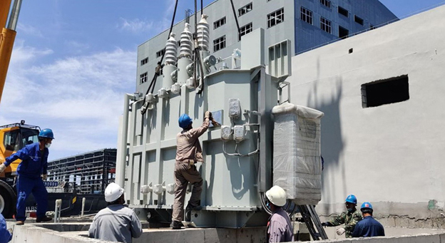 电气仪表工程一公司承建的合盛硅业(鄯善)有限公司14万吨/年混炼硅橡胶项目工程内容包括仪表设备111台,仪表箱、柜31台,仪表电缆16000多米,电气照明灯具908套,风机237台,开关柜、电容柜等盘柜54台,电力及照明电缆79100多米,以及35KV/10KV容量40000KVA油浸式变压器1台,电气施工量较大,任务艰巨。其中35KV/10KV容量40000KVA油浸式变压器的安装是重中之重。