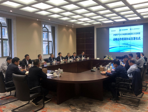 9月23日,公司党委书记黄庆平在市场开发部、南京设计院、内蒙古分公司负责人的陪同下,出席内蒙古伊泰集团200万吨/年煤炭间接液化示范项目战略合作框架协议签字仪式。伊泰集团副总裁、伊泰煤炭股份公司董事长张晶泉,副总裁齐亚平、李俊诚,总工程师刘尚利,以及二化建领导等共同出席签字仪式。