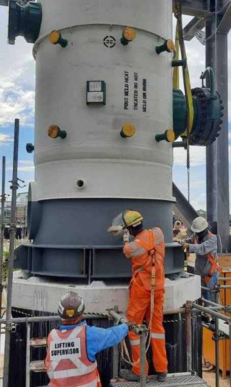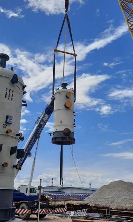 9月23日,项目部、安装工程一公司耐思特项目队、当地分包队伍员工和外籍安全员组成的“临时吊装组”安全顺利完成主装置区21FA-09/73两台设备吊装。吊装过程中,业主、总包全程跟踪,项目部技术人员对业主和总包提出的技术问题及时解答,获得业主和总包一致肯定。两台设备的顺利吊装,标志着项目设备安装工作正式展开。