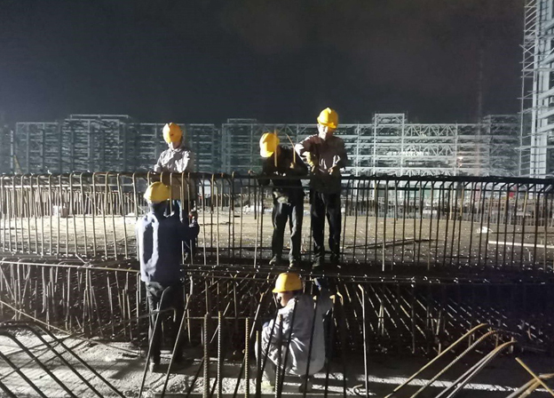 在共和国71华诞的喜庆日子里,建筑工程一公司舟山项目队全体参战员工用自己的方式表达对祖国、对企业的热爱与担当。 国庆中秋假期,建筑工程一公司舟山项目队全员坚守岗位,发扬连续作战精神,克服工期紧、任务重等困难,严把施工质量关、进度关,一举完成异丙苯罐区筏板基础混凝土浇筑、精馏地坪混凝土浇筑、氧化单元地坪混凝土浇筑和PC罐区9901A/9901B/9908/9909四个储罐基础回填工作,顺利完成项目节点任务。至此,项目队土建基础已完成85%,受到业主和项目经理部的一致好评。