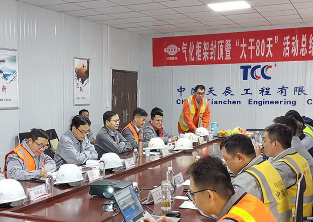 30日上午,占德庆董事长、蔡向阳副总经理出席陕煤集团榆林化学180万吨/年乙二醇项目总包天辰公司“气化框架封顶暨大干80天总结大会”。由于组织得力,气化框架结构提前封顶,业主和总包方给予高度评价并给予专项嘉奖。占德庆董事长对各方给予中化三建的信任与支持表示感谢,表示中化三建将一如既往、全力支持项目建设,与业主、总包一道,勠力同心,攻坚克难,加快推进现场施工,按期交付优质满意工程。随后,占德庆董事长、蔡向阳副总经理仔细查看了空分、气化以及陕西分公司承建的粉煤热解等装置现场,结合项目工期紧、管理标准高、施工难度大等特点,就不断总结经验、强化管理、进一步干好后续工程提出希望和要求。