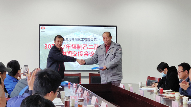 会上,业主与各单位代表分别进行了中间交接签字。至此,陕西分公司承建的陕西渭河彬州化工30万吨/年乙二醇项目净化装置顺利实现中交。
