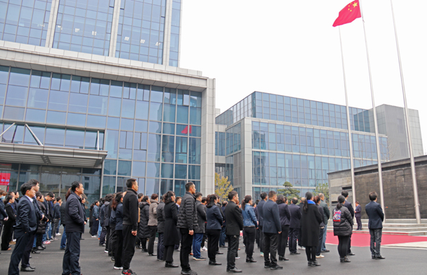 上午9时58分,在激昂雄壮的《义勇军进行曲》中,鲜艳的五星红旗在办公楼楼前广场冉冉升起。这既是一次意义深远的爱国、爱企和“不忘初心,牢记使命”教育,也是立足新平台、奠定新高度、加快新发展的动员和誓师会。