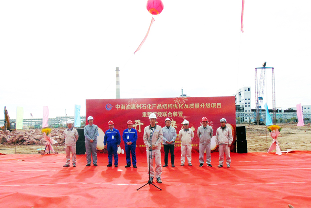 12月15日上午,广东直属项目经理部承建的中海油惠州石化产品结构优化及质量升级项目重整芳烃联合装置举行开工典礼。中海油惠州石化有限公司总经理夏强斌,以及设计、监理、施工单位领导参加开工典礼。公司副总经理赵亚明代表施工单位在开工仪式上致辞。中海油惠州石化有限公司总经理夏强斌宣布项目正式开工。
