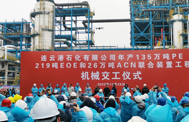 12月29日上午8时30分,连云港石化有限公司在公司承建的连云港石化125万吨/年轻烃裂解装置区举行320万吨/年轻烃综合加工利用项目机械中交仪式。公司董事长占德庆、副总经理赵亚明应邀出席中交仪式。