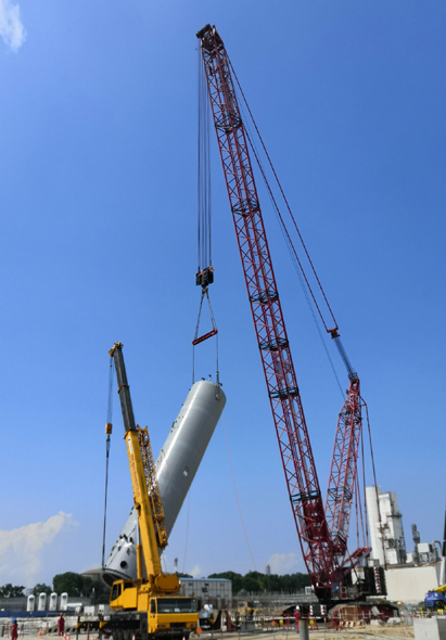 “五一”期间,安装工程一公司承建的新加坡林德气化技改项目首台大型设备——酸性水进料罐安全稳妥吊装就位。