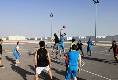 沙特哈拉德项目经理部与“结对子”央企——中石化五公司举行篮球友谊赛。双方队员奋力争抢,时而传球,时而抢板,时而投篮,比分你追我赶、交替上升。不仅打出了各自的高水平,更展示了双方团队的团结拼搏精神。通过组织开展篮球友谊赛,一方面促进了两个单位之间的交流互鉴,增进了工作理解与支持,为提高“结对子”成效创造了条件;另一方面也丰富了哈拉德项目参战员工的业余文化生活,展示了中国化学人的良好精神风貌,增强了队伍凝聚力、向心力和战斗力。
