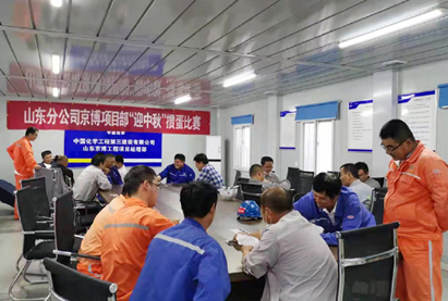 山东分公司京博项目经理部组织开展“迎中秋”职工掼蛋比赛。项目部本着重在参与、重在快乐、重在交流的宗旨,为一线员工搭建交流沟通的平台,为获奖者、参与者精心准备了各式奖品,让大家感受到家的温暖,使一线参战员工在紧张的施工生产间隙感受到了节日的快乐、大家庭的温暖。