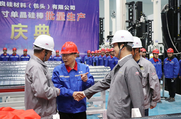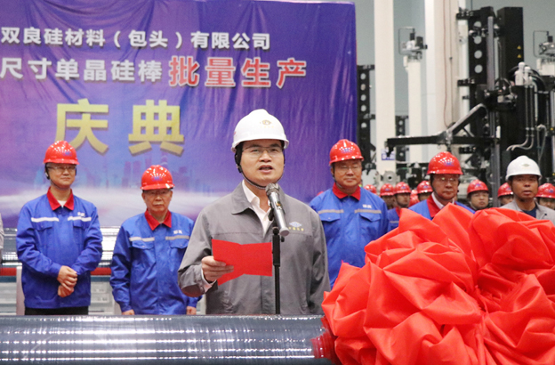 10月5日上午,公司总包的双良集团——双良节能系统股份有限公司包头40GW单晶硅一期项目大尺寸单晶硅棒批量生产庆典在单晶一厂隆重举行。双良集团董事局主席缪双大、总裁马培林等出席庆典活动。公司党委书记、董事长占德庆应邀出席并致辞。