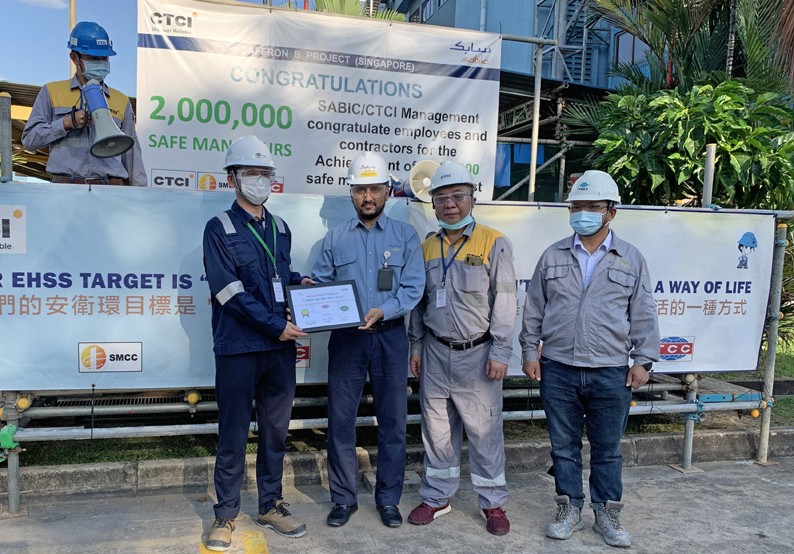 近日,公司副总经理蔡向阳应邀出席业主沙比克创新塑料(新加坡)有限公司和总包中鼎工程有限公司共同举办的沙比克中试项目200万安全工时庆典,并深入新加坡沙比克中试项目现场检查指导工作。