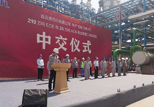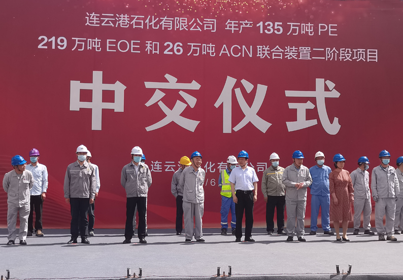 6月1日,公司副总经理李传江应邀出席连云港石化有限公司年产135万吨PE、219万吨EOE和26万吨ACN联合装置二阶段项目中交仪式。
