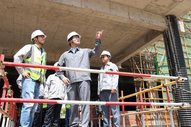 占德庆董事长宣贯了习近平总书记关于安全生产的重要论述和指示批示精神、合肥市安委会《关于开展全市安全生产集中整治六十天 坚决遏制事故高发态势的通知》精神,以及集团公司关于抓好安全生产工作的工作部署,对两个项目高处作业、深基坑防护、高大模板支撑、安全用电、脚手架搭设、起重机械使用、受限空间作业等方面进行了细致、全面、严格的检查。他强调指出,2022年是党的二十大召开之年,是全面建设社会主义现代化国家,向第二个百年奋斗目标进军新征程的重要一年,基础设施分公司及各单位要切实提高站位,不断提高制度执行力,严格全员安全生产责任制考核,以在建项目安全管理的良好成效,保证公司安全生产形势总体稳定,确保实现2022年职业健康安全与环境管理目标。要坚持“人民至上、生命至上、安全第一”,牢固树立“一切事故都可以预防”的理念,筑牢安全生产“三道防线”,努力把问题解决在萌芽之时、成灾之前,确保“安全生产专项整治三年行动”取得积极成效。