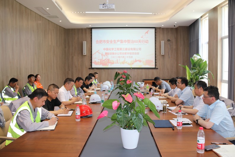 为深入贯彻落实习近平总书记关于安全生产的重要论述和指示批示精神,深入开展“安全生产月”暨“合肥市安全生产集中整治六十天行动”,6月25日(星期六),公司党委书记、董事长占德庆冒着高温酷暑,带领“安全包保责任专班”,深入基础设施分公司承建的合肥市蜀山区小庙生活固体废弃物处置中心、华恒生物工程有限公司工业菌种研发及应用中心项目进行安全生产大检查暨“安全生产集中整治六十天行动”专项督查。