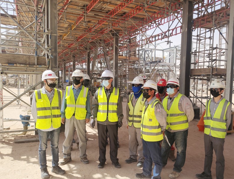 蔡向阳副总经理会见了总包日挥公司高层,双方围绕加快推进项目建设等事宜进行了深入沟通交流,并深入施工现场,对安全、质量、进度控制,文明施工,疫情防控等工作进行了全面细致的检查。