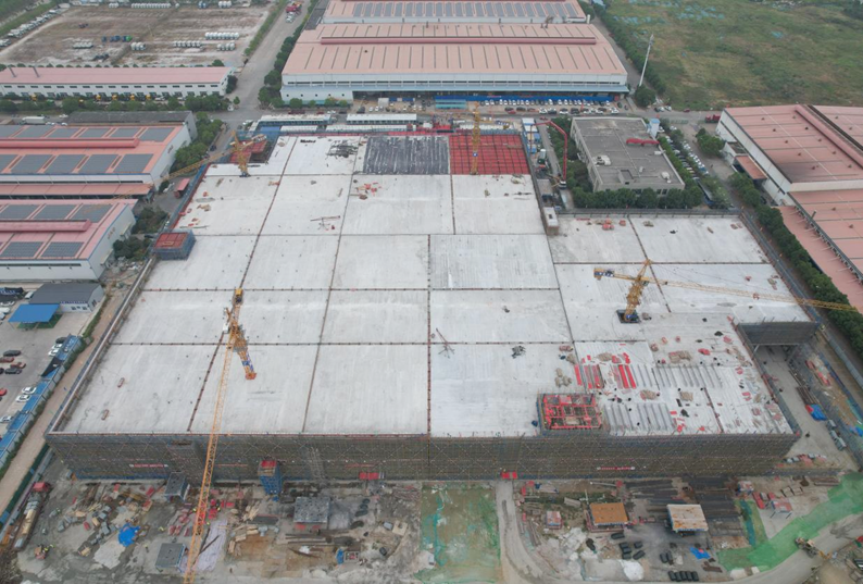 项目建设中,基础设施分公司全体参战员工克服高温、疫情、场地受限等不利因素,鏖战90天,完成4000吨钢筋绑扎、9000吨盘扣架搭设与拆除、12万平方米模板安装与拆除、23000方混凝土浇筑工作,创造了基础设施分公司在建混凝土框架结构厂房体量最大的新纪录,在市政房建专业技术及科技创新领域取得新突破。