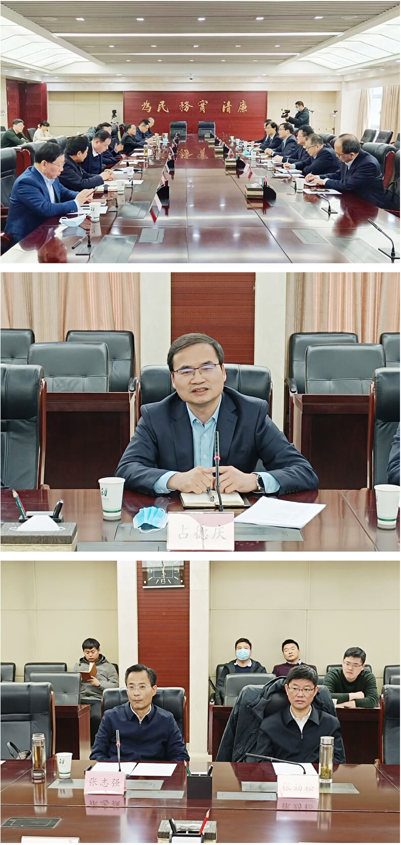 张志强首先对公司成立六十周年表示热烈祝贺,对占德庆董事长的到访表示诚挚欢迎。他说,中化三建与淮南有着深厚的历史渊源,长期以来为淮南市的经济发展作出了积极贡献,自身的改革发展也取得了良好成效。淮南产业基础坚实,未来发展可期。希望双方不断深化沟通交流,加强务实合作,坚持互促融合,实现共赢发展。市委、市政府将持续关注中化三建的改革发展,全力为企业做好服务和保障,相关部门要主动对接、深化沟通、靠前服务,营造一流营商环境,共同推进淮南市经济社会高质量发展。