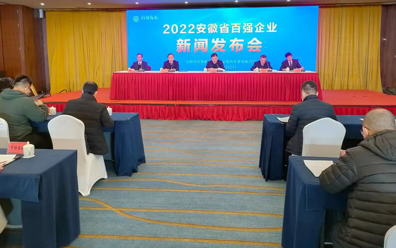 12月12日,安徽省企业联合会、安徽省企业家联合会联合发布“2022安徽百强企业”榜,公司再次荣登榜单。这是继2019年以来,公司连续第四年入选“安徽省百强企业”。