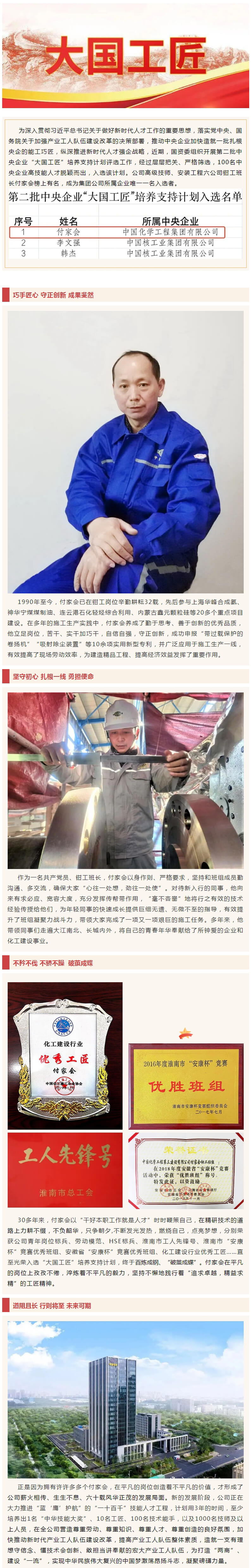 可喜可贺!付家会入选第二批中央企业“大国工匠”培养支持计划
