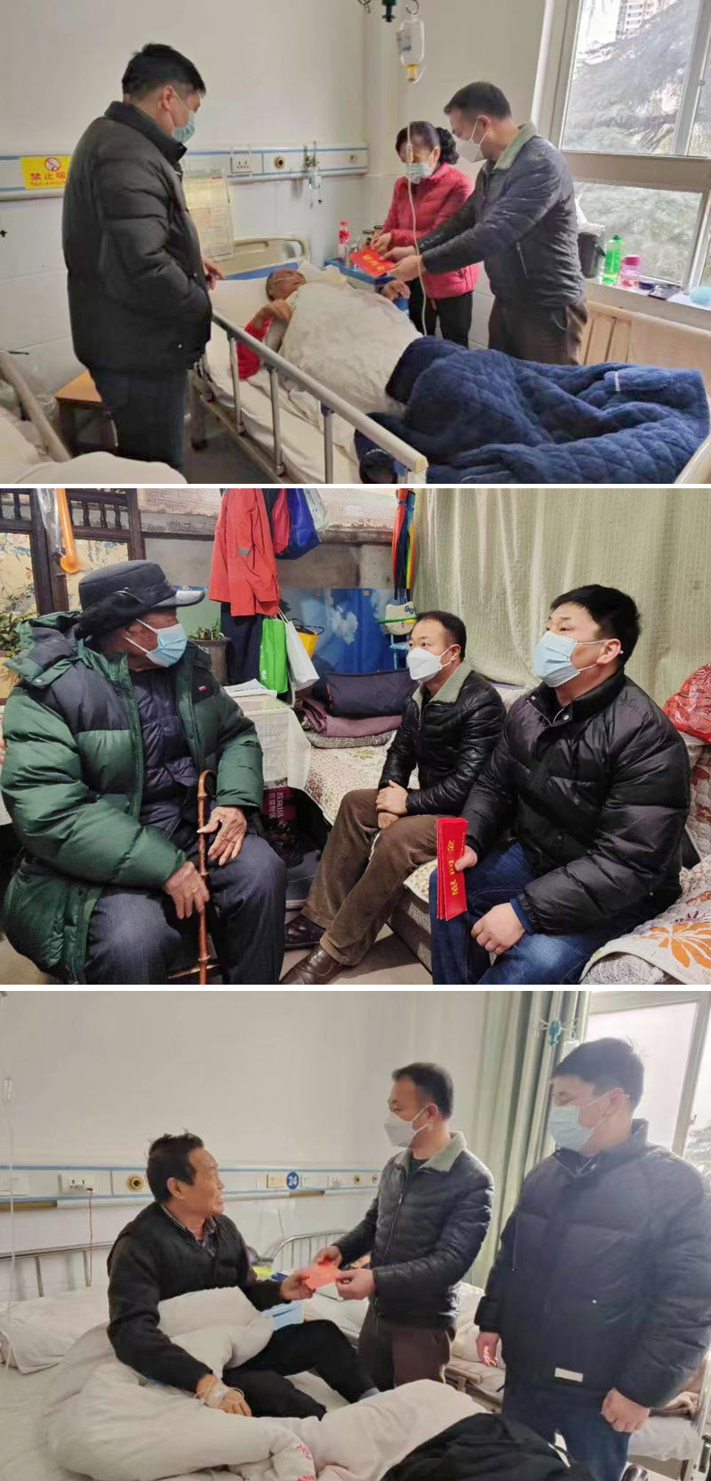 春节来临之际,按照公司党委统一部署,公司行政部组织人员深入在淮离休老干部、住院治疗的退休老领导、生活困难退休职工及患病住院的在职职工家庭,开展走访慰问活动,切实把党的关怀、企业的温暖送到老领导、老同志和困难职工群众心坎上。
