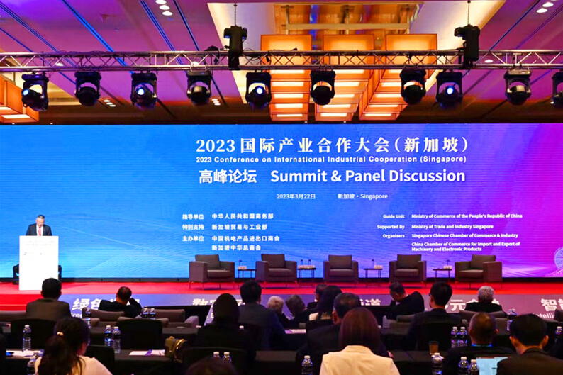 3月22日,由中国商务部和新加坡工贸部主办、中国机电产品进出口商会承办的2023国际产业合作大会(新加坡)暨中国机电产品品牌展览会在新加坡金沙会议展览中心举行。新加坡贸易与工业部、中国商务部、世界贸易组织、福建省、中国驻新加坡大使馆领导,以及集团公司党委常委、副总经理武宪功等出席大会。按照集团公司部署,公司超前谋划、精心组织,高质量完成参展及服务工作。