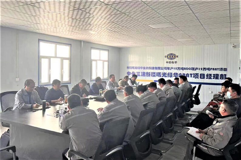 近日,公司副总经理梁华金深入安庆分公司承建的新疆曙光绿华生物科技有限公司10万吨/年BDO联产12万吨/年PBAT项目检查指导工作。