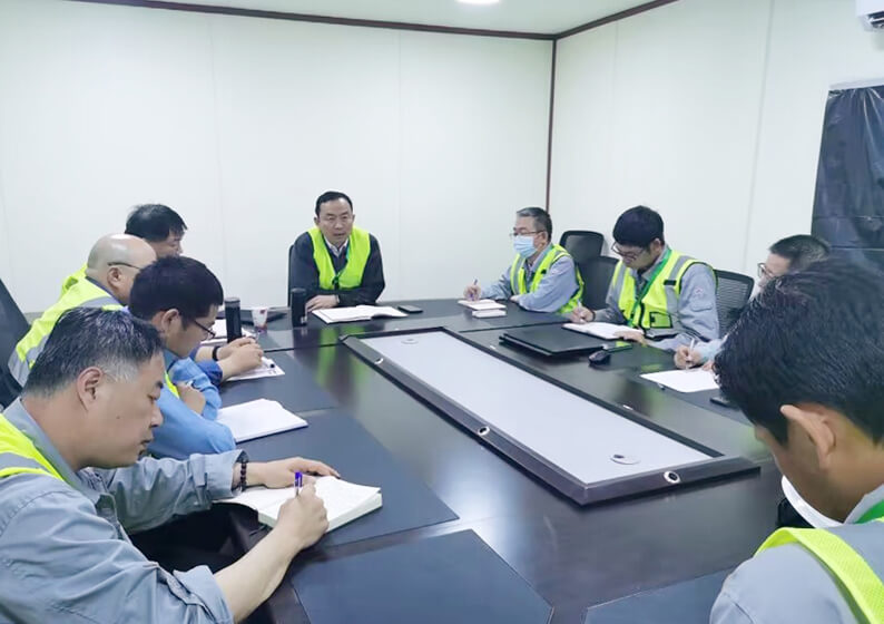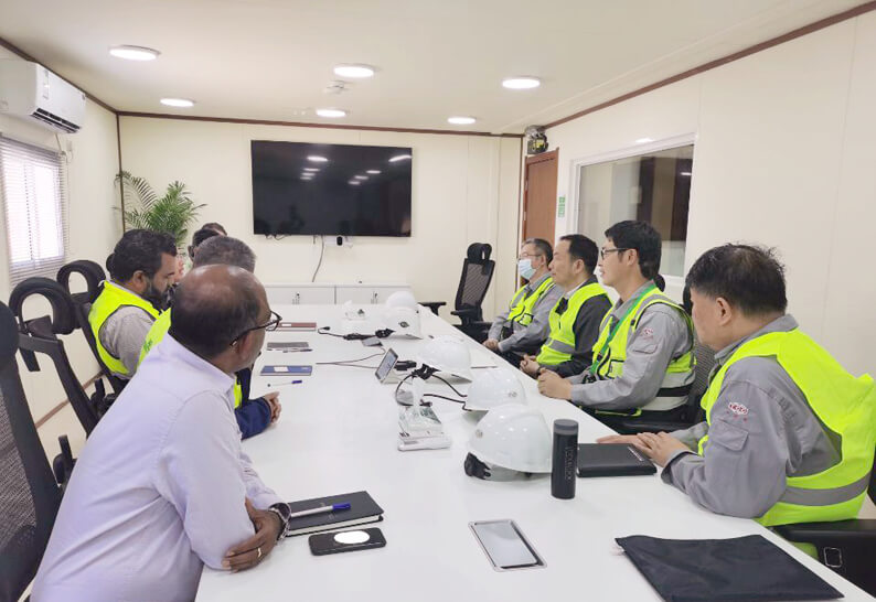 赵亚明副总经理分别查看了查看了预制场、尼奥姆新城氢气创新应用中心项目、南加瓦气体分离装置及配套设施项目现场,详细了解了各在手项目推进情况,强调了推进“三化”建设的重要意义,要求分公司、项目部要根据施工计划提前落实劳动力资源,为现场施工有序推进提供可靠的人力资源保障。要坚持高标准严要求,强化安全质量过程控制,加强现场检查力度,保证安全质量始终处于良好的受控状态。要持续优化施工组织,科学统筹施工计划,加大属地化招聘和人才培养力度,高效发挥外籍员工作用,进一步提高劳动效率,提高项目保障能力。要切实将精细化管理落到实处,强化成本管控,确保项目既定目标的胜利实现,为公司进一步拓展海外市场提供有力支撑。