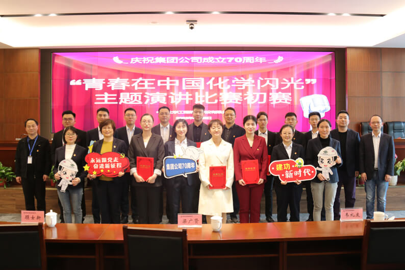 为庆祝集团公司成立70周年,引导广大青年投身企业改革发展、奋力谱写两商转型新篇章,4月26日,公司举办“青春在中国化学闪光”主题演讲比赛。公司纪委办公室、党委办公室、党委组织部、党委工作部、费控部、团委等相关职能部室负责人担任评委嘉宾。淮南市总工会党组书记、副主席梁广贤,淮南市总工会副主席韦礼友,公司党委副书记、工会主席顾士新出席比赛并为获奖选手颁奖。