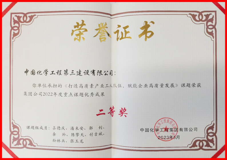 近日,公司承担的《打造高素质产业工人队伍,赋能企业高质量发展》课题荣获集团公司2022年度重点课题优秀成果二等奖。