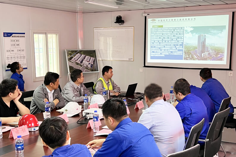 5月16日,公司总经理、党委副书记潘来安深入基础设施分公司承建的安徽和鼎机电设备有限公司600万千瓦时/年新能源(锂电)动力系统装备项目检查指导工作。