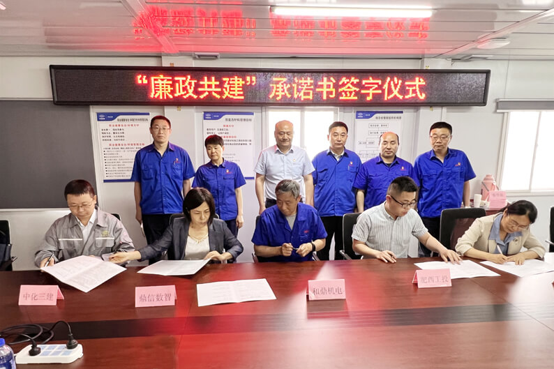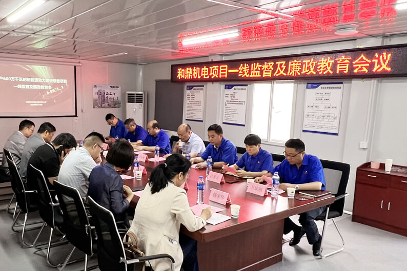 期间,潘来安总经理会见了省监委驻安徽叉车集团监察专员、安徽叉车集团党委委员、纪委书记宗学彬一行,参加了和鼎机电项目一线监督及廉政教育会议,并鉴证了“廉政共建”承诺书签字仪式。