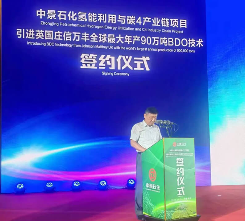 福建中景石化有限公司是福建省石油化工龙头企业,也是全球最大的聚丙烯生产商,享有“世界膜王”之称。此次引进英国庄信万丰全球最大90万吨/年BDO技术是中景石化打造“氢能利用与全降解新材料一体化”产业链、迈向循环发展的关键一步,对于填补国内高端聚烯烃产能缺口具有重要意义。