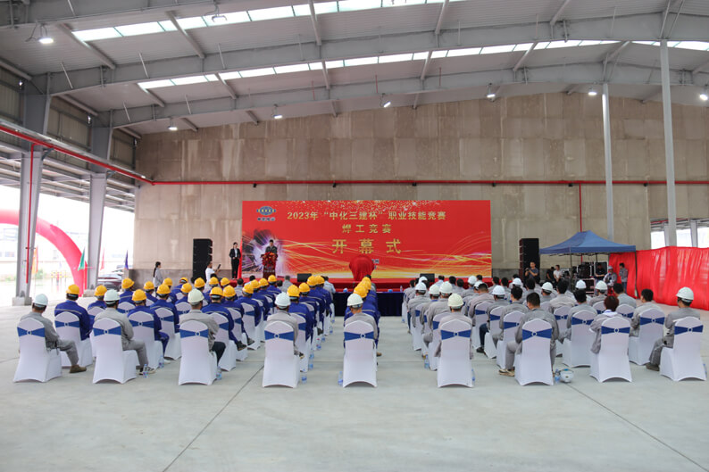 为全面贯彻落实党的二十大精神和公司《产业工人队伍建设三年、五年、十年规划》,加快建设一支宏大的知识型、技能型、创新型产业工人大军,6月19日至20日,公司主办、山东分公司承办的2023年“中化三建杯”职业技能竞赛焊工竞赛在华鲁恒升(荆州)有限公司合成气综合利用及园区气体动力平台项目举行。公司总经理、党委副书记潘来安,山东华鲁恒升化工股份有限公司副总经理潘得胜,公司党委副书记、工会主席顾士新,总工程师潘新宇,山东分公司党政领导、干部员工代表,以及来自公司14个基层单位的30名优秀焊工选手参加19日上午的开幕式。