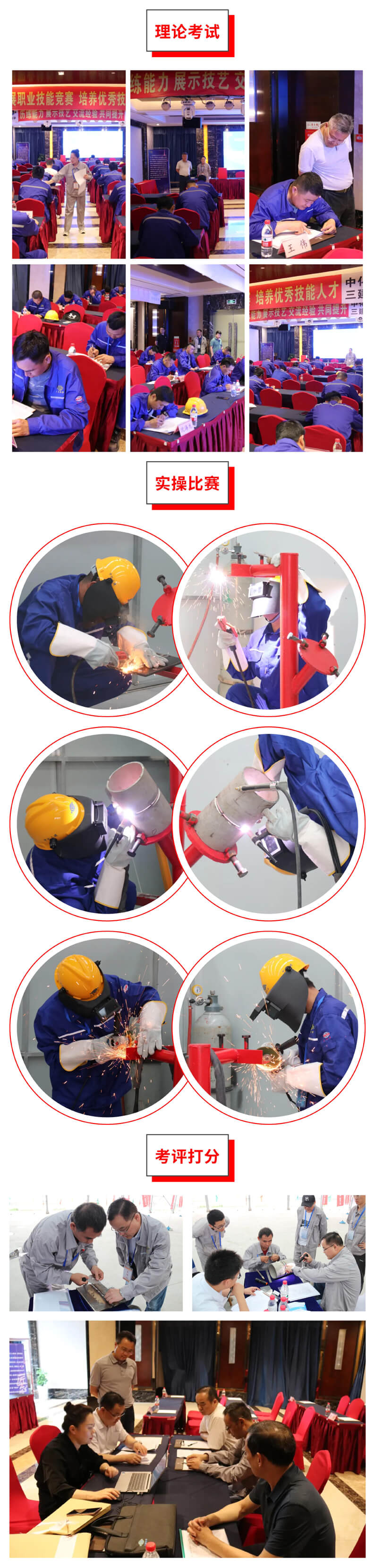 30名选手以高昂的热情和饱满的精神状态投入竞赛。在理论考试环节,选手们沉着冷静,凭借扎实的理论知识在规定时间内完成答题。实操比赛中,各位选手全神贯注,全速进行试件打磨、组对和焊接,一时间现场弧光闪烁、焊花飞舞。在严格执行安全规程和技术规范的前提下,选手们高效完成比赛,体现了良好的职业素养和过硬的技能水平,彰显了精益求精、追求卓越的工匠品质,精彩表现赢得了公司领导和各工作组成员的一致肯定。期间,监督组严格监督、严肃考风考纪;竞赛结束后,裁判组对焊缝外观成型、无损检测结果等进行了联合打分评判,做到严守纪律、严格裁决、公平公正;会务组全体人员细致安排、周到服务,保证了竞赛顺利进行。