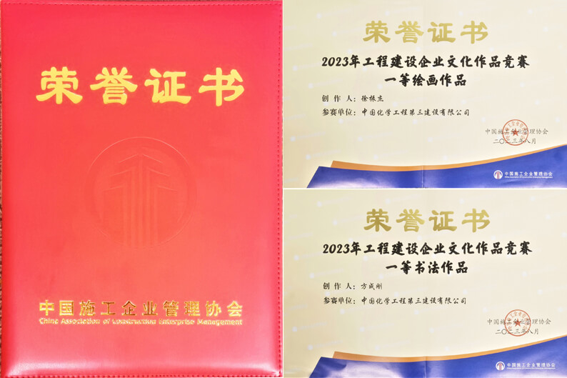 为深入贯彻落实党的二十大精神,展示广大工程建设企业文化建设成果,交流推广企业文化建设先进经验,推动企业文化建设高质量发展,8月16日至18日,中国施工企业管理协会在武汉召开2023年度工程建设行业文化大会。本次大会以“弘扬时代文化,展示企业风采”为主题,共1200多家企业参与活动。通过内容审查、专业评价、网络投票等环节,对“海量”参赛作品进行了评比。公司职工方成刚创作的书法作品《征程》、退休职工徐振杰创作的绘画作品《奋斗岁月》脱颖而出,同时荣获一等奖。