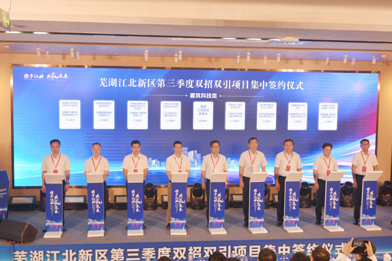 9月6日,公司党委书记、董事长占德庆应邀出席芜湖江北新区第三季度双招双引项目集中签约仪式,与芜湖市人民政府市长徐志,常务副市长张东,市委常委、江北新区党工委书记、常务副主任姚凯,市委常委、宣传部部长韦秀芳等进行了深入沟通交流并接受媒体专访。本次集中签约,公司全资子公司安徽铖铧建安公司作为建筑科技项目区域总部落户芜湖江北新区,公司副总经理赵亚明代表公司与芜湖江北新区管委会签约。