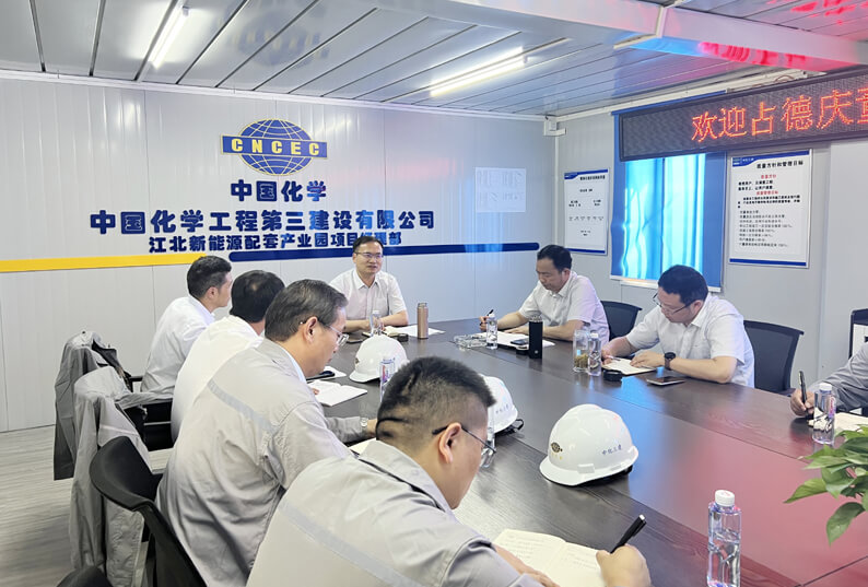 期间,占德庆董事长一行实地查看了安徽铖铧建安公司承建的江北新能源配套产业园项目安全、质量、进度控制及文明施工等方面工作,调研了安徽铖铧建安公司芜湖机关办公楼、食堂、职工宿舍等设施。占德庆董事长十分关心铖铧建安干部职工由淮南迁入芜湖的住宿、医疗、子女教育等情况,要求铖铧建安高标准抓好实体化建设,推动企业高质量发展,与广大干部职工共享改革发展成果。