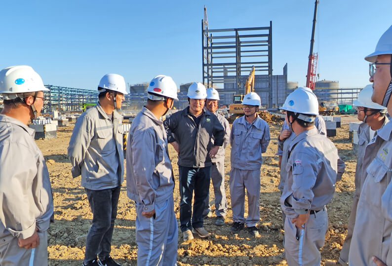 近日,公司总工程师潘新宇深入山东分公司承建的裕龙石化炼化一体化项目调研。