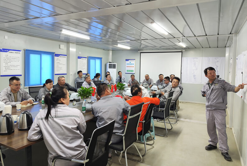 潘新宇总工程师查看了裕龙石化一体化项目年产60万吨ABS、6万吨溶聚丁苯橡胶、150万吨*2#芳烃三个现场安全、质量、进度控制等工作开展情况及相关内业资料,听取了项目运行情况汇报,看望慰问了一线广大干部员工,就持续掀起大干热潮,安全优质高效推进项目建设提出要求。一是针对检查发现的安全质量问题,举一反三,逐一落实整改,不留隐患。二是针对三个现场不同施工阶段的实际情况,因地制宜地组织开展“质量月”活动,丰富活动形式,提高全员质量意识。三是加强重点部位及关键工序控制,严把钢结构吊装、地面保护、深基坑作业、土方回填等重要关口,防范化解风险,确保项目建设平稳受控。四是持续完善智能仓储系统建设,从严把控甲供材限额领料和使用,为项目结算提供精准可靠的数据支撑。五是围绕工期目标,加强项目策划,统筹各类资源,优化方案和工序,提升施工效率,全力打好项目建设攻坚战,做好项目总结工作,以干好在手项目为依托,树立企业品牌,积极承揽后续项目,为公司加快打造“两商”、创建“四新”现代新国企、建设国际一流工程公司贡献力量。
