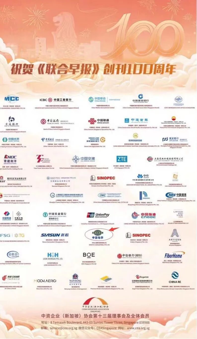 近日,新加坡《联合早报》创刊100周年之际,推出“百年报庆特辑” 版面。应中资企业(新加坡)协会邀请,新加坡有限公司与协会第十三届理事会及全体成员单位共同参加“百年报庆特辑” 品牌商标宣传展示活动,祝贺《联合早报》创刊百年。